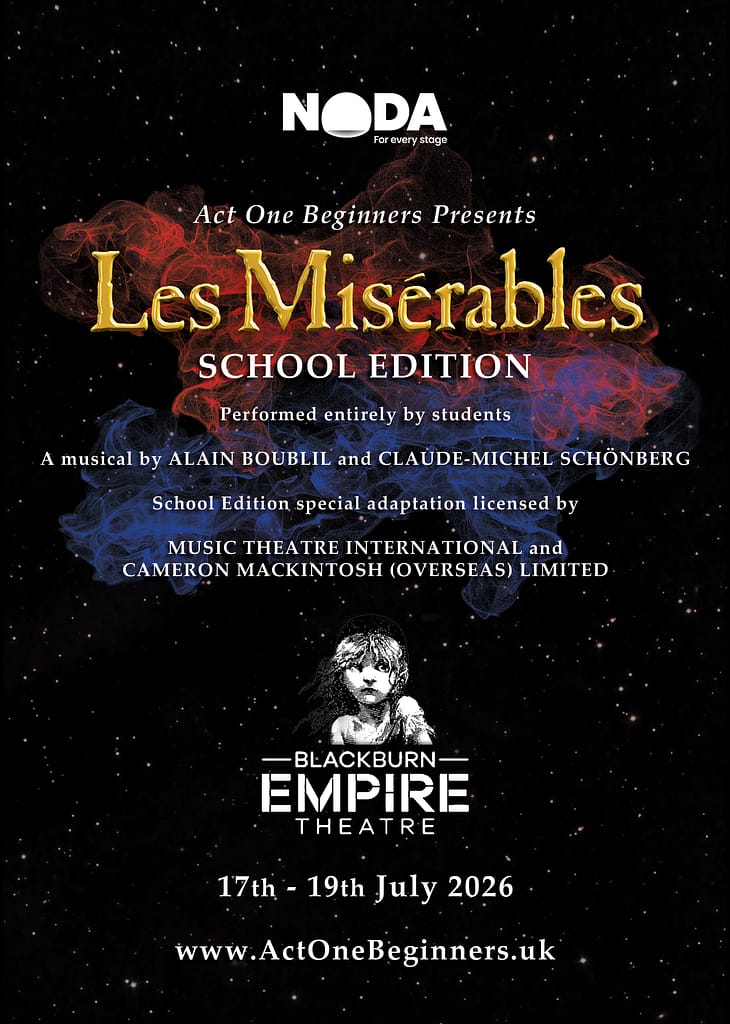 Founded in 2019 by Principal Leanne Wharf and her husband Greg, Act One Beginners is a Performing Arts School, based in Burnley, for students aged 3–18. We provide professional training in acting, singing, and dancing, while helping young people build essential life skills – from communication and teamwork, to confidence that lasts a lifetime.